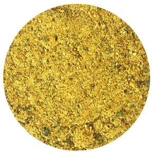 Zutaten: Orangenschale, Sumach, Persisches Blausalz, schwarzer Pfeffer, Kurkuma, Zitronenschale, Koriander, Petersilie, Basilikum, Chili, Muskat